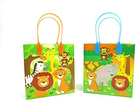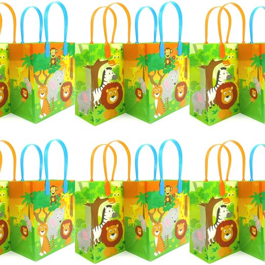 TINYMILLS Safari Jungle Animals Themed Party Favor Bags Treat Bags with Handles, Safari Animals Jungle Book Candy Bags for Birthday Party Goodie Bags, Pack of 12