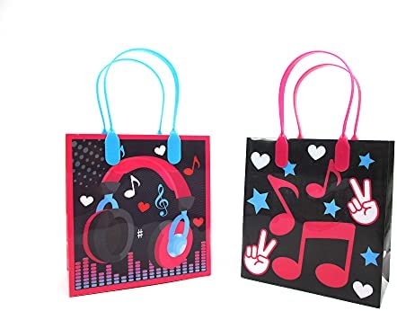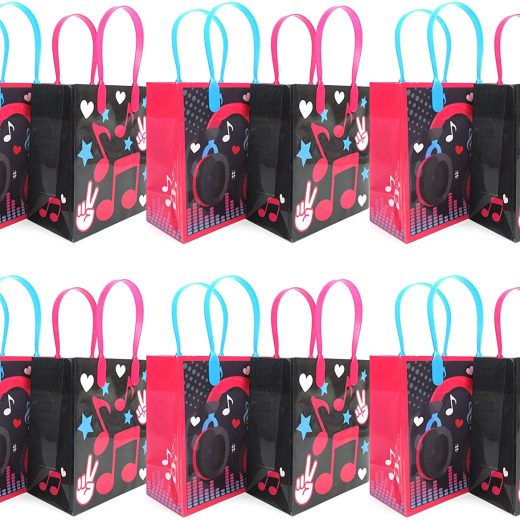 TINYMILLS Music Party Favor Treat Bags- Music Goody Bags with Handles for Birthday Party, Girls Birthday Party Pack of 12