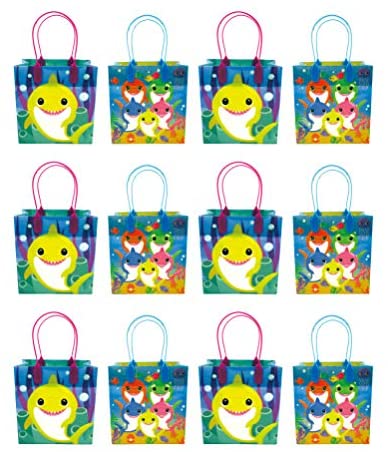 TINYMILLS Shark Family Party Favor Treat Bags with Handles, Shark Candy Bags for Birthday Party, Party Supply Decorations Toddler Party Goody Bags Pack of 12