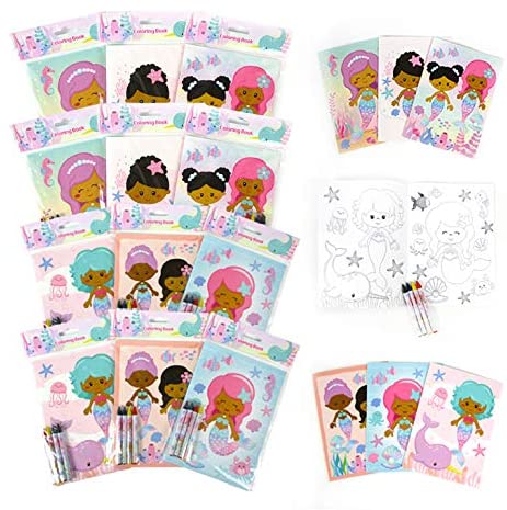 TINYMILLS Mermaids Under the Sea Coloring Book Set with 12 Coloring Books and 48 Crayons Mermaids Birthday Party Supplies Favor Bag Filler Carnival Prizes Rewards Stocking Stuffers Classroom Party