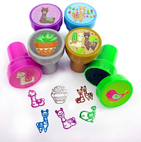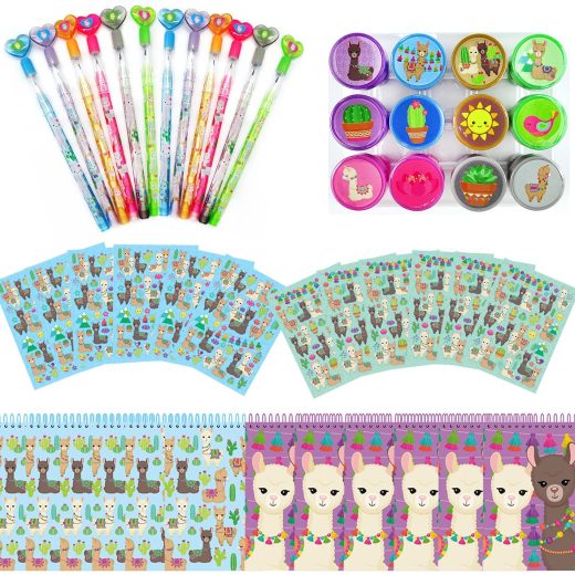 TINYMILLS Llama Alapaca Birthday Party Favor Set (12 multi-point pencils, 12 self-inking stampers, 12 sticker sheets, 12 small spiral notepads) Llama Alpaca Party Supplies Party Favors Pinata Stuffers