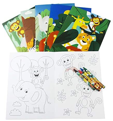 TINYMILLS Safari Zoo Animals Coloring Book for Kids Party Favor Set with 12 Coloring Books and 48 Crayons Fun Jungle Book Animals Birthday Party Supplies Zoo Party Favor Bag Fillers