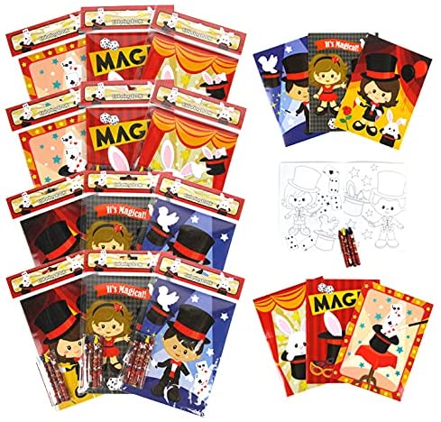 TINYMILLS Magic Themed Coloring Book Set for Kids Party Favors with 12 Coloring Books and 48 Crayons Birthday Party Supplies Favor Bag Filler