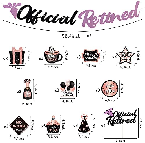 WATINC 42pcs Rose Gold Retirement Party Decoration for Women, Happy Official Retired Banner Sign Hat Cake Topper Foil Swirls Decor Farewell Retirement Party Supplies Photo Booth Props Ideal for Women