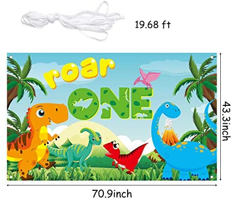 WATINC Roar One Birthday Backdrop Banner Dinosaur Theme 1 Year Old Wild Forest Background Photo Booth Photography Baby Shower Polyester Party Decorations Supplies for Home Studio 71×43 Inch