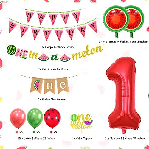 Watermelon First Birthday Decorations One in A Melon Garland High Chair Banner Kit Cake Topper Watermelon Balloons, Summer Fruit Theme 1st Birthday Boys or Girls Party Supplies