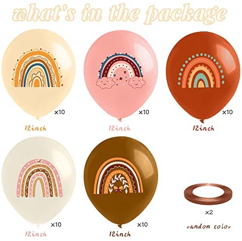 WATINC 52PCS Boho Rainbow Balloon Set for Kids Boys Girls, Multicolor Bohemian Pattern Latex Balloons for Baby Shower Birthday Summer Wedding Graduation Party Background Decoration (5 Colors)