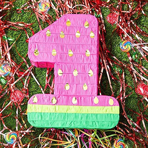 Watermelon Piñata for Kids 1st Birthday Party, Number 1 (16.5 x 10.8 x 3 In)