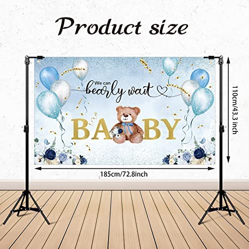 We Can Bearly Wait Baby Shower Decorations Watercolor Sky Blue Balloons Teddy Bear Backdrop Baby Shower Boy Backdrop Customized Baby Shower Backdrop Baby Bear Shower Decorations for Photo Booth Props