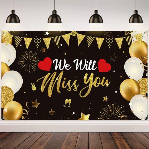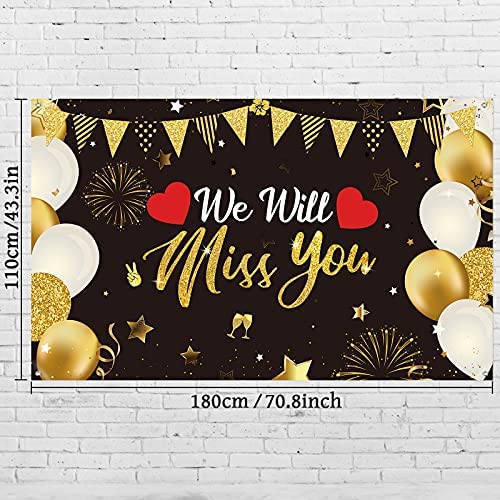 We Will Miss You Party Decorations, Extra Large Going Away Party Backdrop Miss You Photography Background Banner for Farewell Anniversary Retirement Graduation Party, 72.8 x 43.3 Inch (Black, Gold)