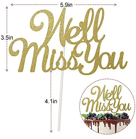 We ll Miss You Cake Topper, Farewell, Retirement, Job Change, Graduation, Going Away Party Decorations (Gold Glitter)
