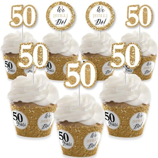 We Still Do – 50th Wedding Anniversary – Cupcake Decoration – Anniversary Party Cupcake Wrappers and Treat Picks Kit – Set of 24