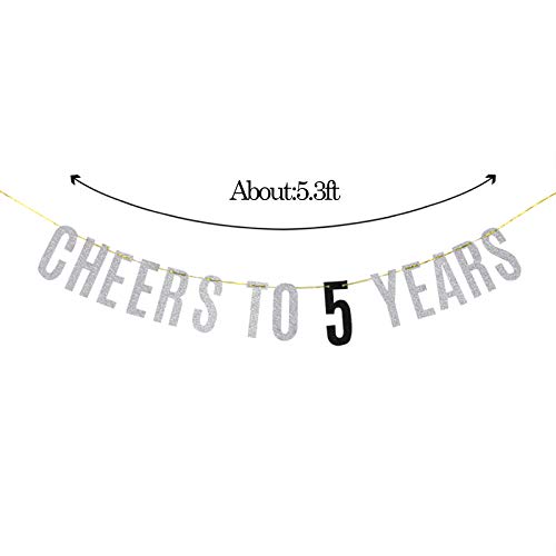 WeBenison Cheers to 5 Years Banner Children 5th Birthday 5th Anniversary Banner Celebration Party Decoration Supplies Silver Glitter