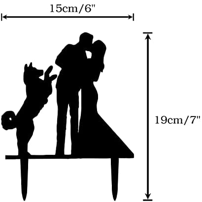 Wedding Cake Topper Bride Groom Kissing Silhouette and Jumping Husky Dog Acrylic Cake Topper Wedding Anniversary Engagement Party Decoration