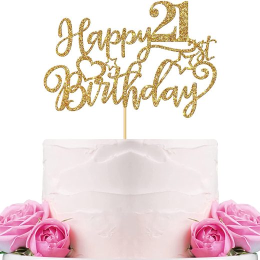 WeBenison Happy 21st Birthday Cake Topper Finally 21st Birthday Cake Supplies Boy or Girl 21 Years Old Birthday Party Decorations Gold Glitter