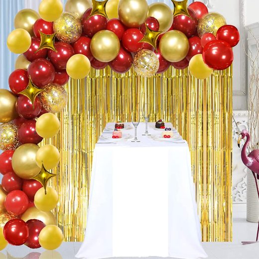 WECEPAR Red and Gold Balloon Garland Arch Kit with Ruby Red and Gold Balloon, Star Balloon Confetti Balloons and Background Curtain, for New Year Wedding Birthday Bridal Shower Supplies Baby Shower Anniversary Party