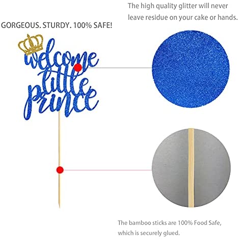 Welcome Little Prince Cake Topper Royal Blue Gold Glitter Boy 10 Years Birthday Party Supplies, Decorations