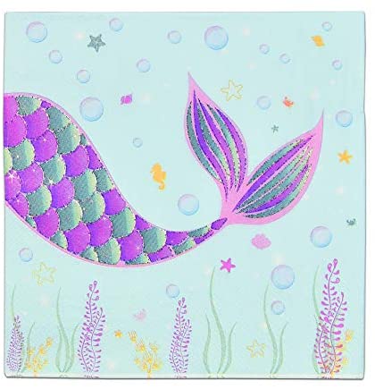 WERNNSAI 50PCS Mermaid Party Luncheon Napkins – Mermaid Party Supplies Disposable Cocktail Dinner Paper Napkins for Baby Shower Birthday Under the Sea Pool Party