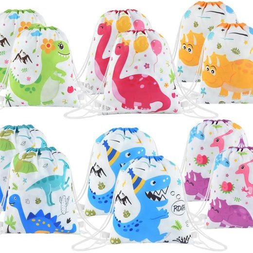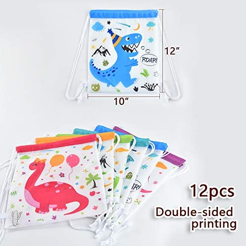 WERNNSAI Dinosaur Party Supplies – 12 PCS 10 x 12 Family Dino Theme Drawstring Bag for Kids Birthday Baby Shower Party Favor Bags Washable Backpack Wrap Goodie Gift Bags