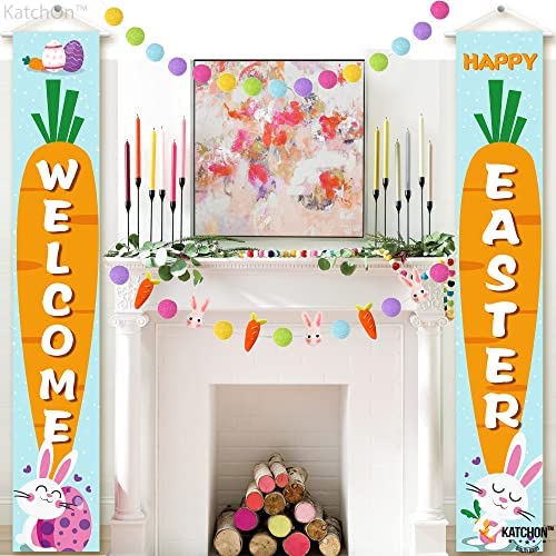 Welcome Happy Easter Porch Sign – 72×12 Inch | Happy Easter Banner for Outside Easter Decorations | Easter Door Banner, Easter Porch Decorations | Easter Spring Banner, Easter Door Decorations Hanging