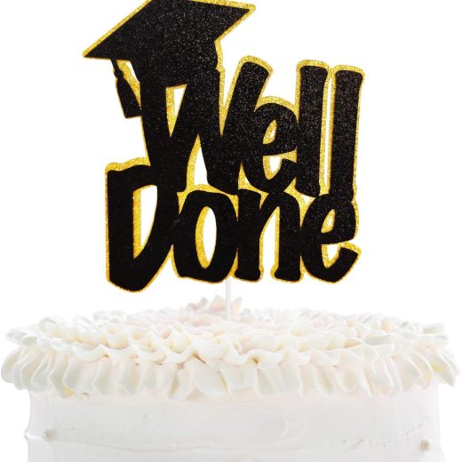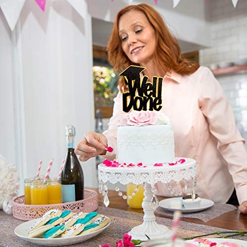 Well Done Graduation Cake Topper – Celebrate Grad Black Glitter Grad Cap Cake Décor – Congrats Graduate Master Ph.D College Graduate Party Decoration