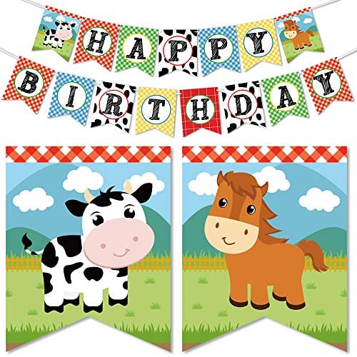 WERNNSAI Farm Animals Birthday Banner – Happy Birthday Banner with Tractor Barnyard Bunting Garland for Kids Boys Girls Farm Theme Party Decorations Supplies