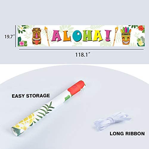 WERNNSAI Hawaiian Tropical Theme Party Decorations – 19u201d x 118u201d Large ALOHA Banner for Summer Pool Beach Party Supplies Luau Tiki Big Yard Sign Photo Background