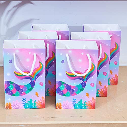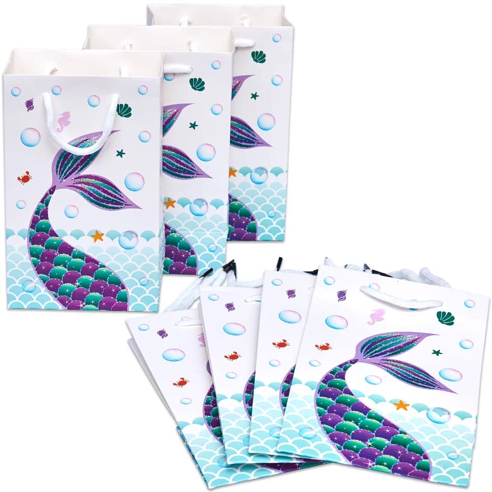 WERNNSAI Mermaid Party Supplies – 16 PCS Party Bags for Girls Treats Bags Storage Gift Portable Paper Goodies Bags for Kids Birthday Baby Shower Pool Party Favors