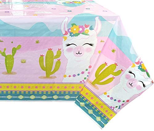 WERNNSAI Llama Table Cover – 2 PCS 54u201d x 108u201d Party Disposable Plastic Tablecloth, Alpaca Lama Party Supplies for Kid Girl Pink Picnic Birthday Party Decorations