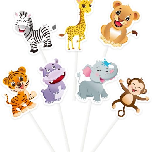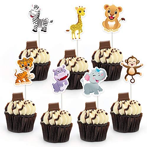 WERNNSAI Jungle Zoo Animals Cupcake Toppers Picks – 28 PCS Safari Theme Party Cake Decorations for Kids Birthday Baby Shower Party Supplies