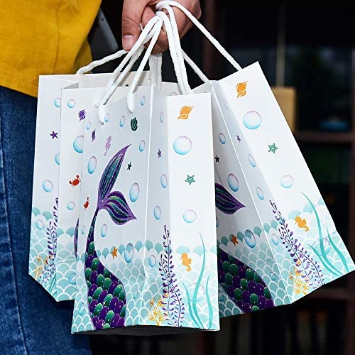 WERNNSAI Mermaid Party Favor Bags – Ocean Under The Sea Theme Party Supplies Portable Paper Goody Treat Gift Bags for Girls Birthday Wedding Baby Shower Pool Beach Picnic Party, 16PCS