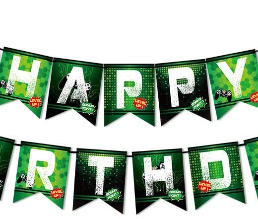 WERNNSAI Game Birthday Banner – Video Game Party Supplies Happy Birthday Bunting Garland for Boys Kids Player Geeks Gaming Themed Party Decorations Assembled