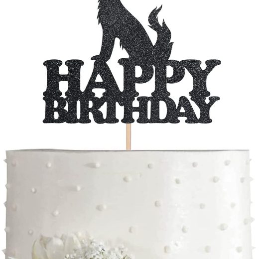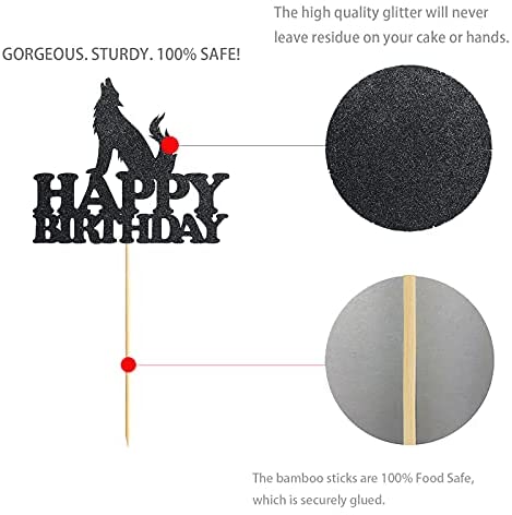Wolf Cake Topper, Black Glitter Wolf Happy Birthday Party Decoration