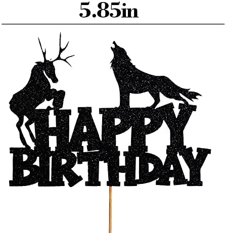 wolf cake topper wolf silhouette happy birthday cake decoration kids boys girls birthday party glitter black supplies decoration