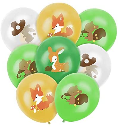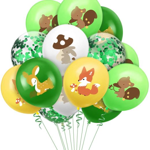 Woodland Animals Balloons Deer Squirrel Rabbit Fox Confetti Balloon Baby Shower Birthday Party Decoration Supplies 15pcs Kids Safari Jungle Party Green Forest Ballon