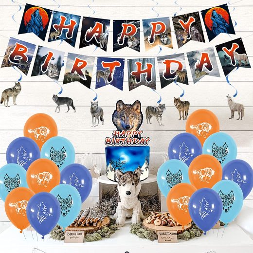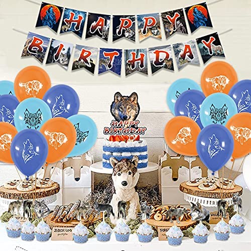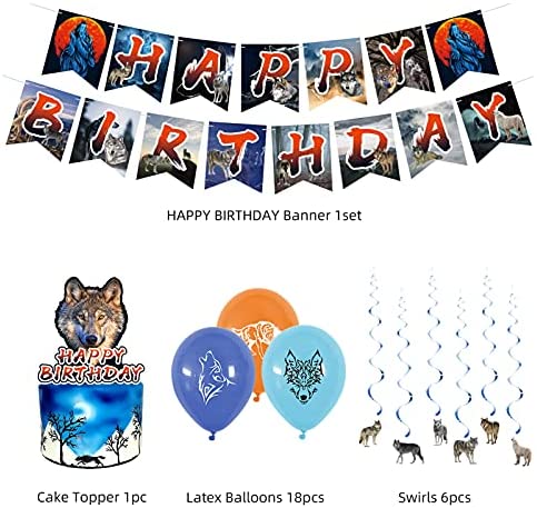 Wolf Birthday Party Supplies Included Wolf Animal Happy Birthday Banner Hanging Swirls Wolf Shape Wolf Cake Topper Wolf Balloon for Kids Boy Girl Birthday Baby Shower Festival Party Supply
