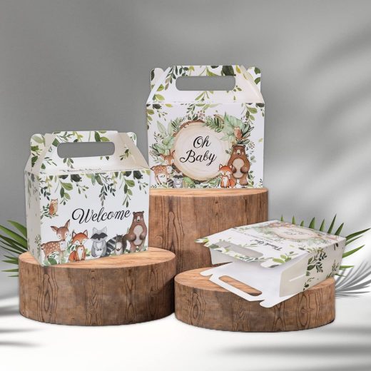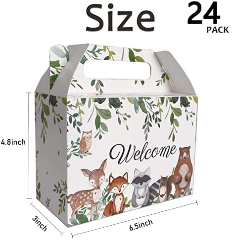 Woodland Baby Shower Decorations-24Pcs Candy Boxes with Handles, Woodland Creatures Baby Shower Treat Boxes for Baby Shower or Woodland Birthday Party Supplies
