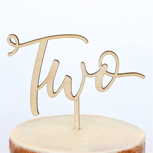 Wood Two Cake Topper , 2nd Birthday Boy and Girl Party Decoration – Rural 2 Year Anniversary