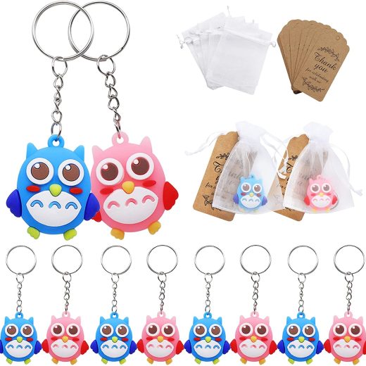 Woodland Animal Owl Keychain Birthday Party Favors 24 Sets Cute Owl Keychain Goodie Gifts with Thank You Kraft Tags And White Gift Bags For Kid Birthday Party Supplies