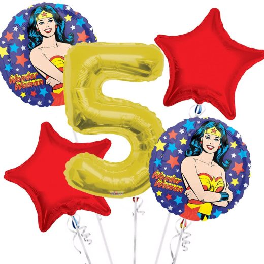 Wonder Women Balloon Bouquet 5th Birthday 5 pcs – Party Supplies