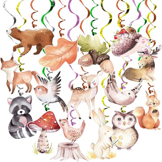 Woodland Animal Party Supplies Decorations 30 Pack Foil Ceiling Hanging Swirls Streams Party Banner Decor for Kids Adults Cute Animal Birthday Celebrating Party Events Baby Shower Room Wall Decor