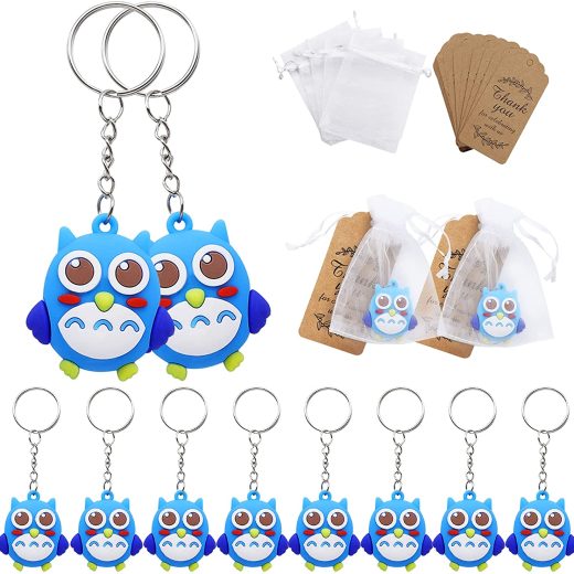Woodland Animal Blue Owl Keychain Birthday Party Favors 24 Sets Cute Owl Keychain Goodie Gifts with Thank You Kraft Tags and White Gift Bags for Boys Birthday Party Supplies Baby Shower