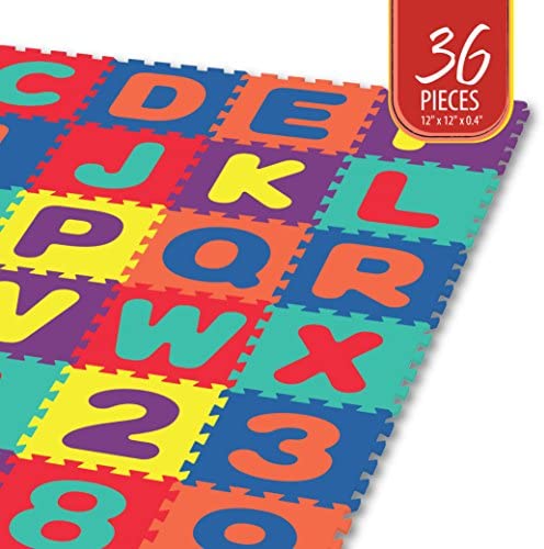 Alphabet & Numbers Rubber EVA Foam Puzzle Play Mat Floor. 36 Interlocking playmat Tiles (Tile:12X12 Inch/36 Sq.feet Coverage). Ideal for Crawling Baby, Infant, Classroom, Toddlers, Kids, Gym Workout