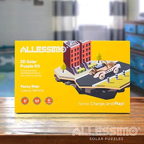 Allessimo – Solar 3D Solar Puzzle – Fancy Car Model Kit (64 pcs) Solar-Powered Assembly 3D Puzzle Science Kit, STEM/STEAM Educational Toys for Kids Ages 6+