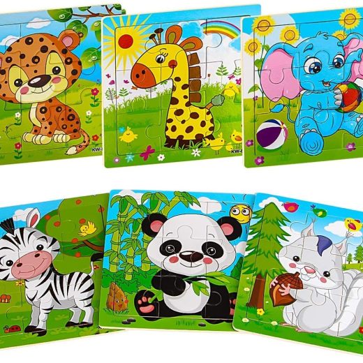 Aitey Wooden Jigsaw Puzzles for Kids Ages 2-5 Toddler Puzzles 9 Pieces Preschool Educational Learning Toys Set Animals Puzzles for 2 3 4 Years Old Boys and Girls (6 Puzzles)