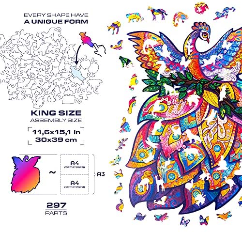 UNIDRAGON Wooden Jigsaw Puzzle, Best Gift for Adults and Kids, Unique Shape Jigsaw Pieces Fairy Bird, 11.6 x 15.1 in (30 x 39 cm) 297 pcs, King Size