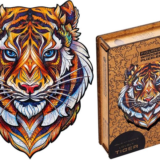 UNIDRAGON Wooden Jigsaw Puzzle, Lovely Tiger, Best Gift for Adults and Kids, Unique Shape Jigsaw Pieces – 181 pcs 9.8