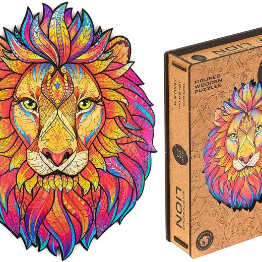 UNIDRAGON Wooden Jigsaw Puzzle, Best Gift for Adults and Kids, Unique Shape Jigsaw Pieces Mysterious Lion, 9.7 x 12.5 in (24 x 31 cm) 192 pcs, Medium