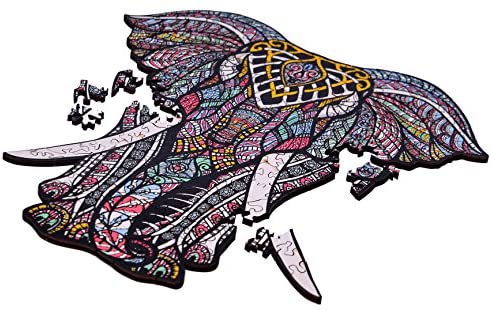 Wooden Jigsaw Puzzles u2013 Decorative Elephant Hartmaze HM-06 Small Size Puzzle 171 Unique Shape Jigsaw Pieces-Beautiful Animal for Adults and 9 Years Age up Teens- Best for Family Game Play Collection.