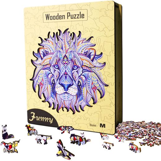 Wooden Jigsaw Puzzles for Adults, Unique Shaped Wood Puzzle, Animal Shaped Puzzles, Wooden Lion King Puzzle, Christmas Birthday Gift for Adults Teens, 10.2 x 8.2